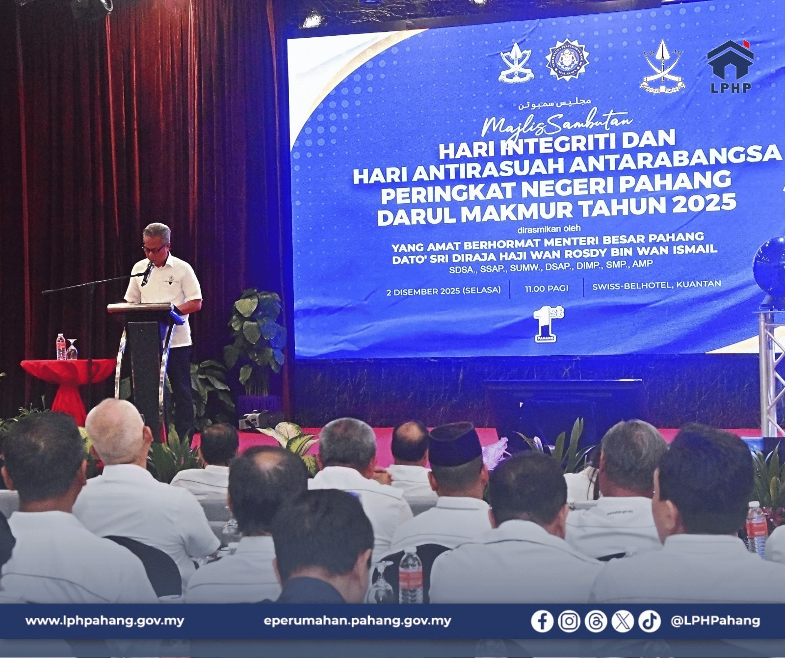 Majlis Sambutan Hari Integriti & Hari Antirasuah Antarabangsa Peringkat Negeri Pahang telah berlangsung di Swiss-Belhotel Kuantan, pagi tadi.